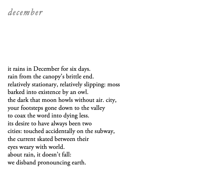 These days the topography of life varies, oftentimes violently. I’m incredibly grateful for the stabilizing forces in my life: among them, poetry.