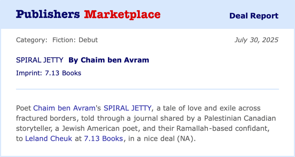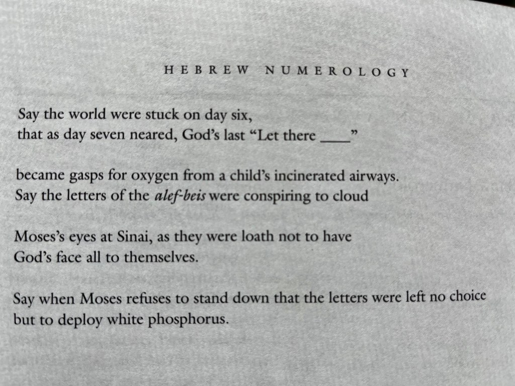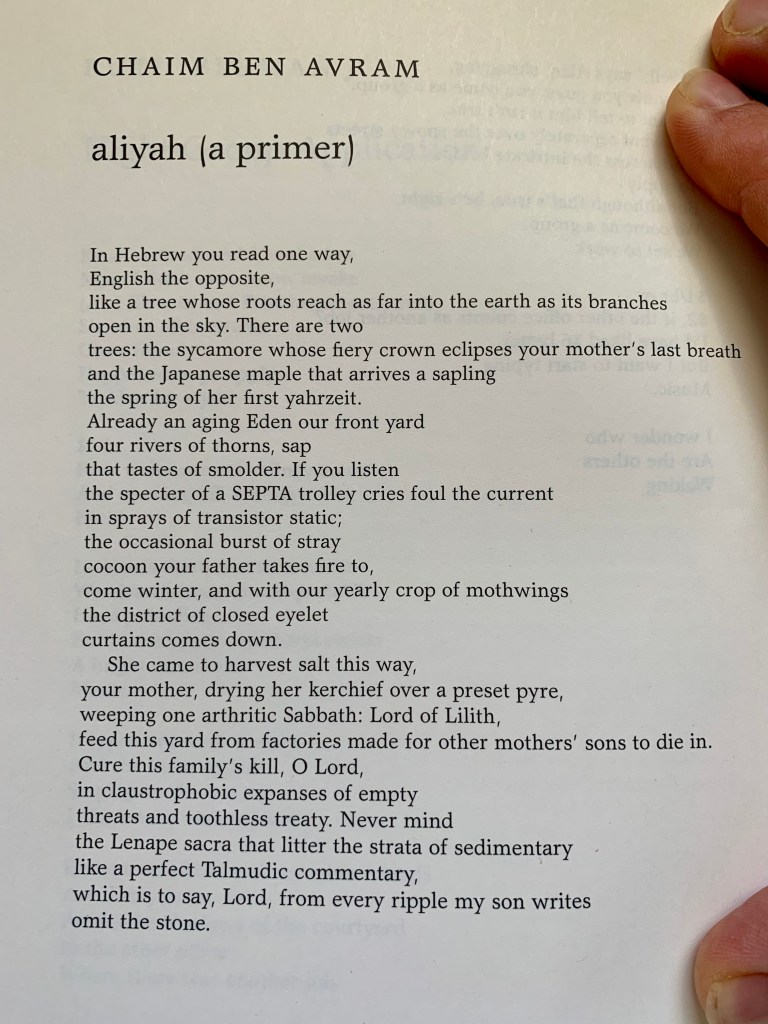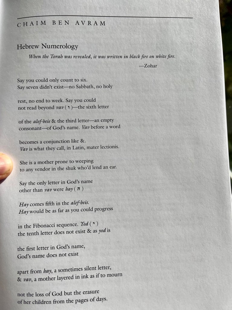 Deeply honored to have aliyah (a primer) appear in Issue 56.1 of Denver Quarterly. Thank you, Lucien and fellow editors! To see these verses in print inspires awe and gratitude, as they are the first to appear in my novel… which I just finished… and which is slated for defense come early May. Halevai, CBA